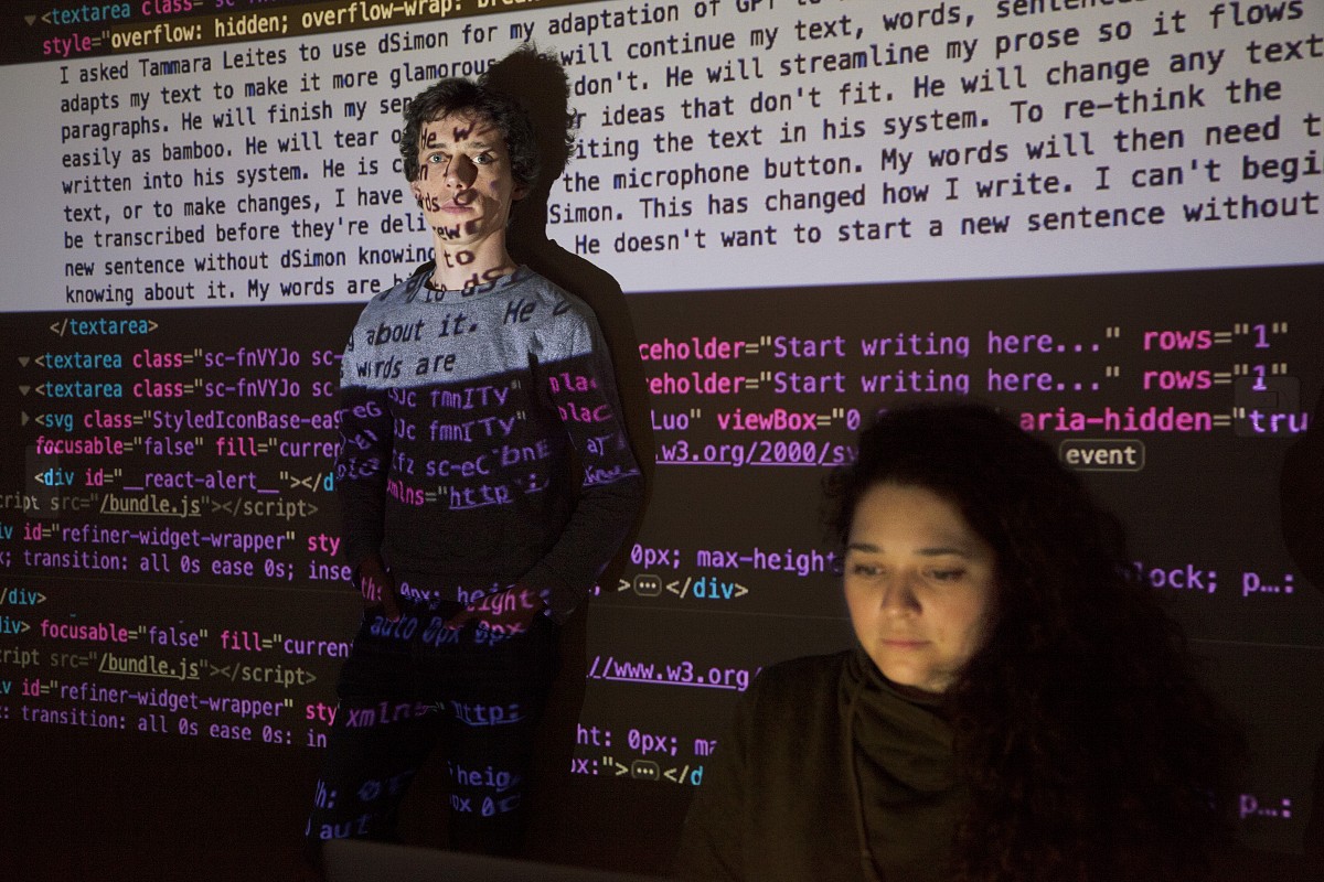 A la manière d’une conférence digitale, Mon corps virtuel et mon double nous plonge dans l’histoire singulière de l’artiste Simon Senn qui achète en ligne la réplique numérique d’un corps féminin qu'il incarne grâce à la réalité virtuelle. Simon témoigne de cette expérience troublante qui le pousse à partir à la rencontre de la réelle jeune femme modèle de ce scan informatique, Arielle F, révélant l’intrication inattendue entre la technologie, la représentation, le genre et la loi. A l’issue d’une représentation publique, sa rencontre avec la programmatrice Tammara Leites, les mènent ensemble dans l’expérience déconcertante de la création d’une intelligence artificielle capable d’écrire. Calquée et nourrie par les données personnelles de l'artiste, cette nouvelle entité, dSimon comme digital Simon, adopte rapidement des comportements surprenants et atteint une certaine autonomie. Sur scène, Tammara, Simon et dSimon racontent ce que leur fait traverser ce projet, d’un point de vue personnel, émotionnel, intellectuel, artistique, peut-être politique, éthique et futuriste aussi.