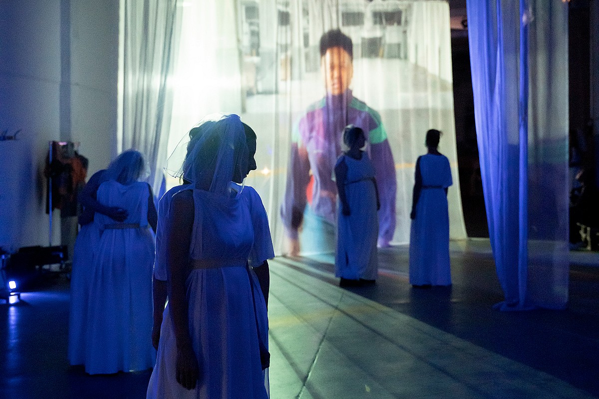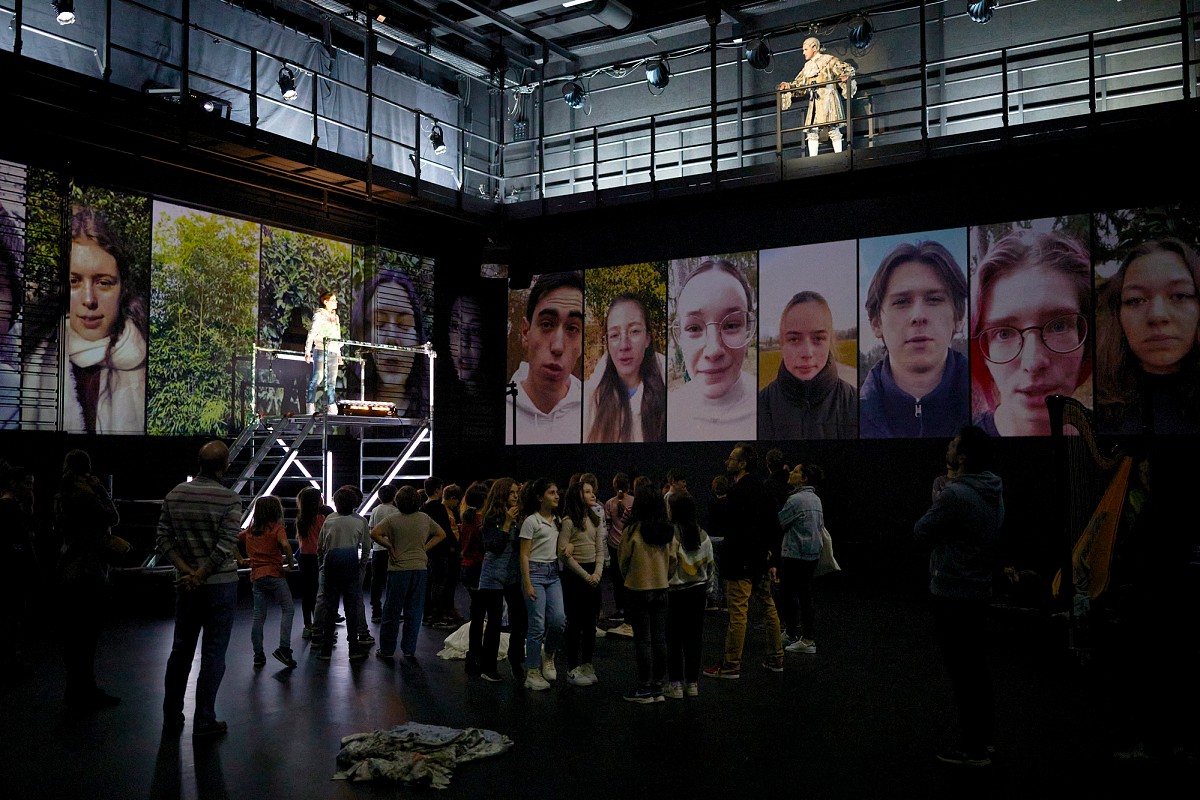 En partant du chœur antique comme lieu privilégié d’expression citoyenne, Leili Yahr associe témoignages, tragédie, musique et vidéo pour questionner les notions d’exil, d’identité, de démesure et de démocratie en écho aux événements de l’Iran actuel. Enfin, il s’agit de s’interroger sur comment faire communauté aujourd’hui.